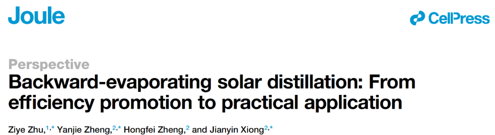 近日,suncitygroup太阳新城郑宏飞教授课题组在Cell能源领域旗舰子刊《Joule》(IF=35.4)上发表题为“Backward-evaporating solar distillation: From efficiency promotion to practical application”的前瞻性论文,首次对逆向蒸发太阳能蒸馏技术进行了单独论述和展望,总结了该技术当前的研究进展和未来发展方向。太阳集团官网祝子夜、郑彦捷博士后和熊建银研究员为共同通讯作者,太阳集团官网为论文的唯一署名单位。